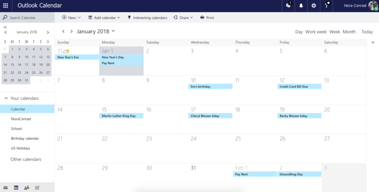 Newly updated calendar, works on Apple, Android and Windows devices. You need a live, outlook, or hotmail account to access it.