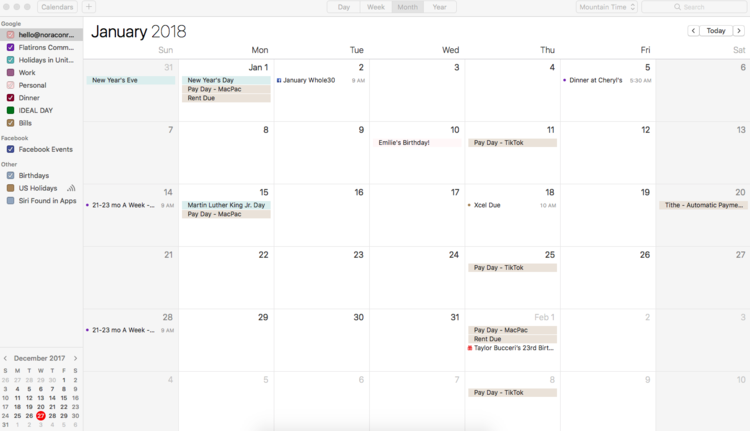 I love Google Calendar simply because it works as a native app with my Google Pixel phone, I can access it online and at work and I have a google account that I use for my business. My husband also uses Google Calendar so inviting each other to our calendar events is quick and simple. Maybe you’re an apple person, great. Use iCal. Use whatever you like. Just use it every day and stop looking for something better.