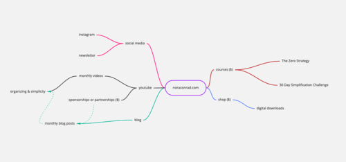 Take some time to make a map of your site, offerings, and products. Then cut out what you don’t need and combine what you can. I used Miro to do mine, but you can use a pen & paper too or a tool like Milanote.